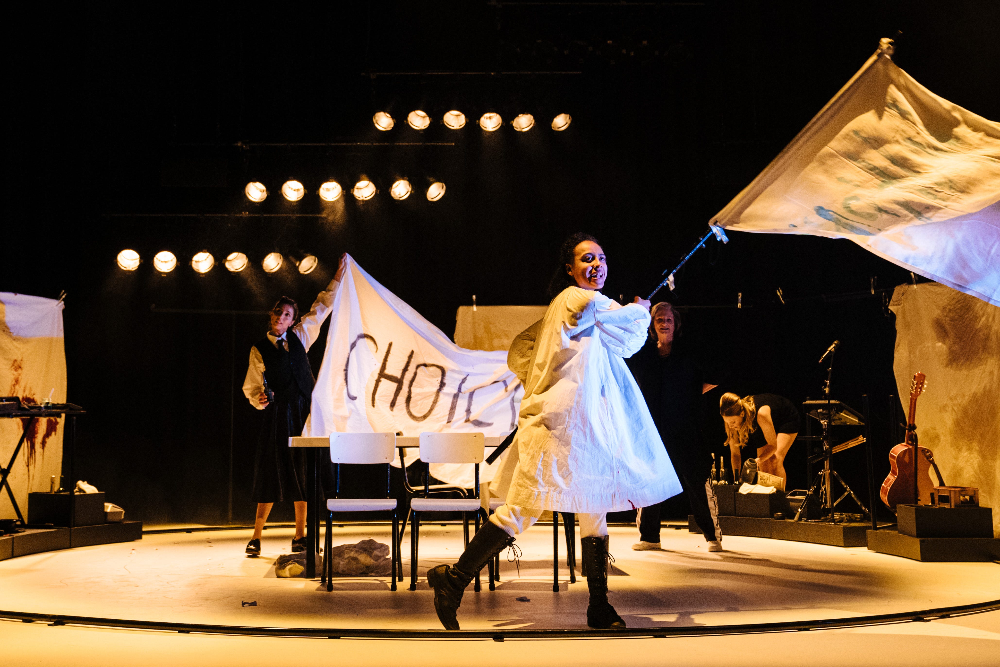 Within a whirlpool of laughter and pained cries, singing and synths, these five actors collectively created a seemingly normal life from birth to old age. Love, loss and sexual experiences joyous, painful and muddy were all major emotional beats in Annie’s life that played out before our eyes in snippets and photographic tableaus. In doing so, they let us into her very soul: the soul of all womanhood.