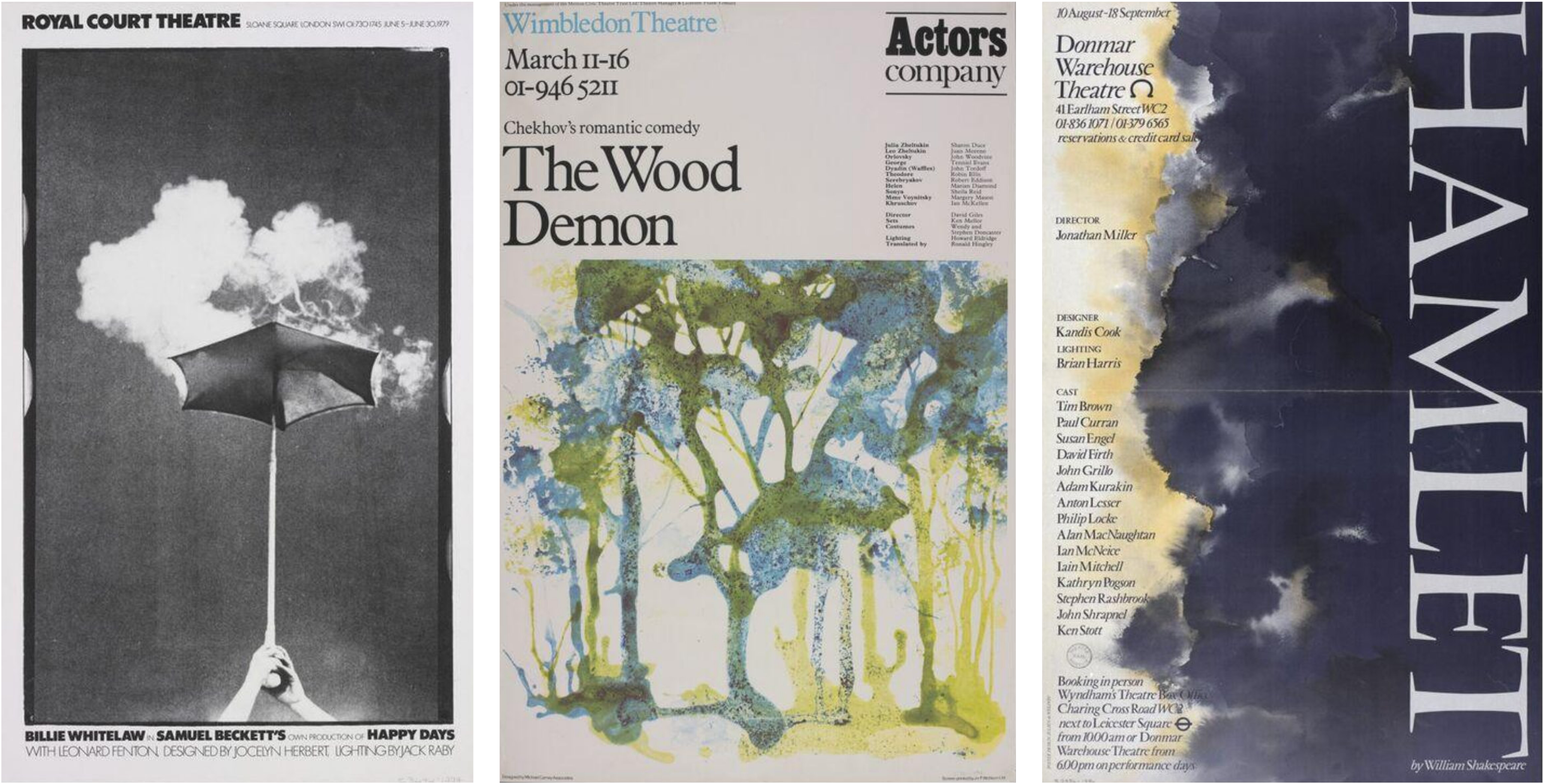 It's interesting, that most of the recent-ish posters that people love and remember seem to be these kinds of designs: bold, simple, clever. Still, looking back through the V&A’s archives, I was struck by the evocativeness of some offerings from the seventies and eighties – with a softer, more artistic aesthetic: see the Donmar’s watercolour Hamlet, a surrealist Happy Days, or the painterly The Wood Demon. There are modern echoes of this approach, too, even if they’re less common and also still less hand-made looking; readers praised the surrealist elegance of Rebecca Pitt’s Sap poster, and the work by Guy J Sanders for New Diorama Theatre, combining subtle text with vividly collaged imagery.