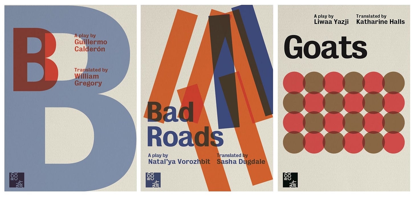 The NT’s recent(ish) posters got loads of shout-outs, with love for Angels in America, An Octoroon, The History Boys, Mother Courage, and The Motherfucker in the Hat; some of my own favourites include Nine Night, Everyman, and Henry V. The success of the crisp, clean, slightly retro font-and-picture style has been hugely influential: you can feel its stamp surely, on the posters for several recent seasons at Chichester, as designed by Bob King Creative. Also mentioned with fanish ardour were the retro designs adopted by the Royal Court around 2017/8. Resembling mid-century posters or book covers, there was an elegant simplicity and effortless cool to the designs: the posters don’t give you much to go on, beyond the name and playwright – an invitation to just trust the Court’s programming. I loved them too.